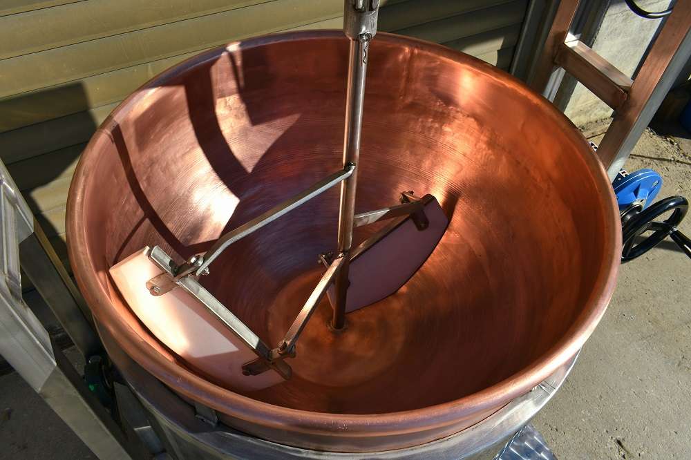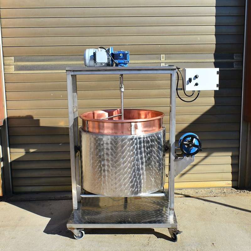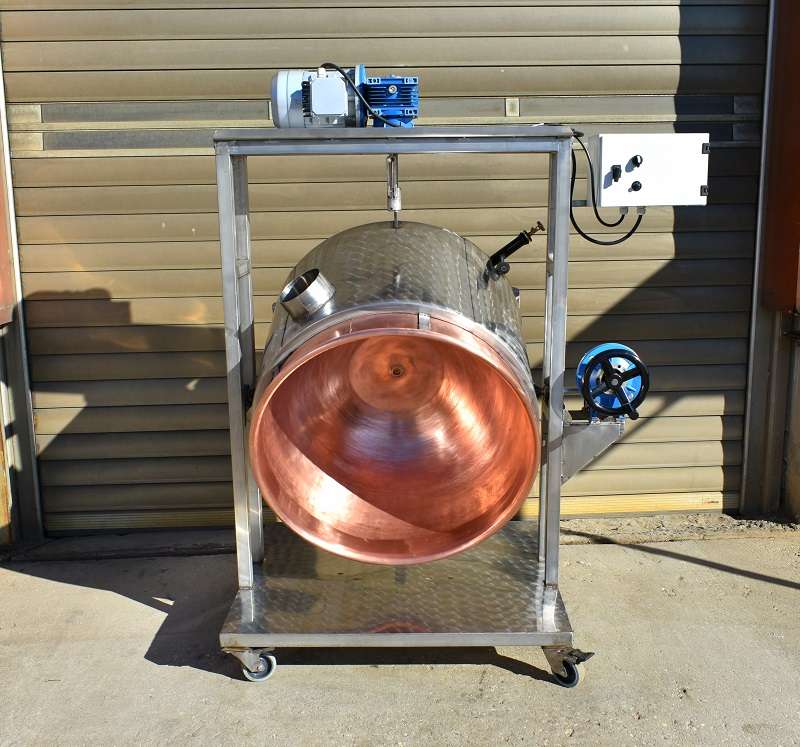 ΧΑΛΚΙΝΟ ΚΑΖΑΝΙ ΚΥΛΙΝΔΡΙΚΗΣ ΜΟΡΦΗΣ ΖΑΧΑΡΟΠΛΑΣΤΙΚΗΣ ΧΡΗΣΗΣ 150LIT. ΤΡΟΧΗΛΑΤΟ ΜΕ ΕΙΔΙΚΟ ΙΝΟΧ ΦΟΥΡΝΟ ΚΑΥΣΗΣ