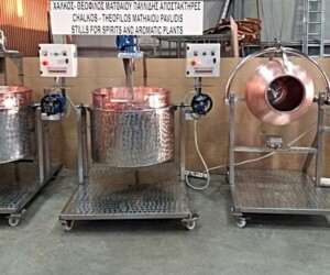 The machines we manufacture are of various types and shapes such as spherical, semicircular and conical. Suitable for glazing caramelized nuts, mandoles and dried fruits. For the stirring a stainless or PTFE anchor agitator suitable for food is used to uniform and better heat the boiling material. An INVERTER control panel can be placed to control the rotations of the stirring. The proper stirring results in the ideal production of loukoumi, halva, jams, pastry creams and spoon sweets.